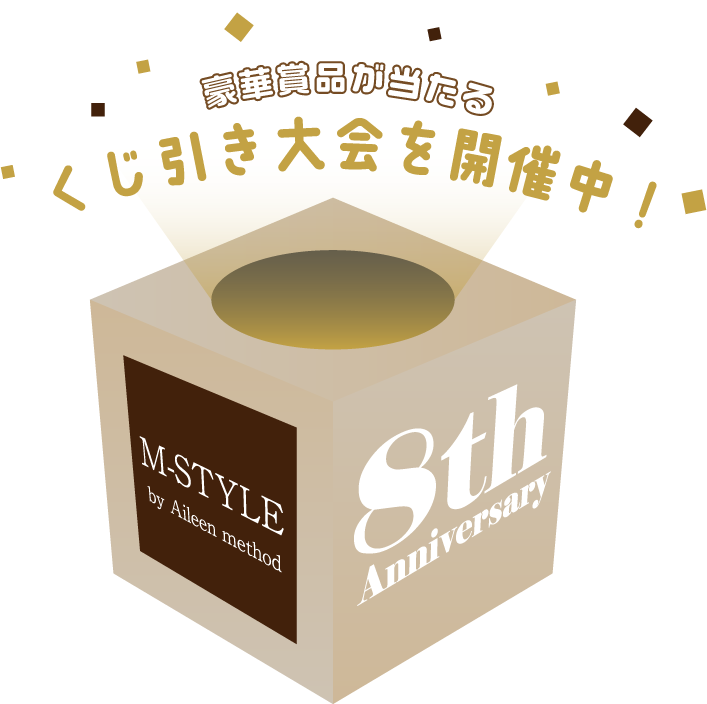 いつもご愛顧いただきまして誠にありがとうございます。 この度M-STYLEは8周年を迎えることができました! 日頃からバストケアを頑張っている皆様へ感謝の気持ちを込めまして 豪華景品が当たる【ハズレなし】く…
